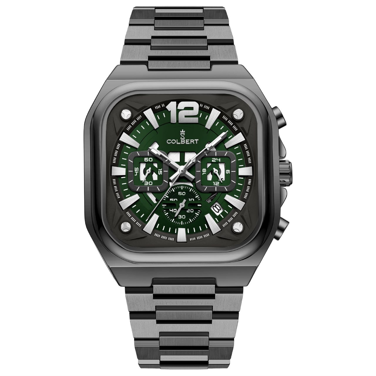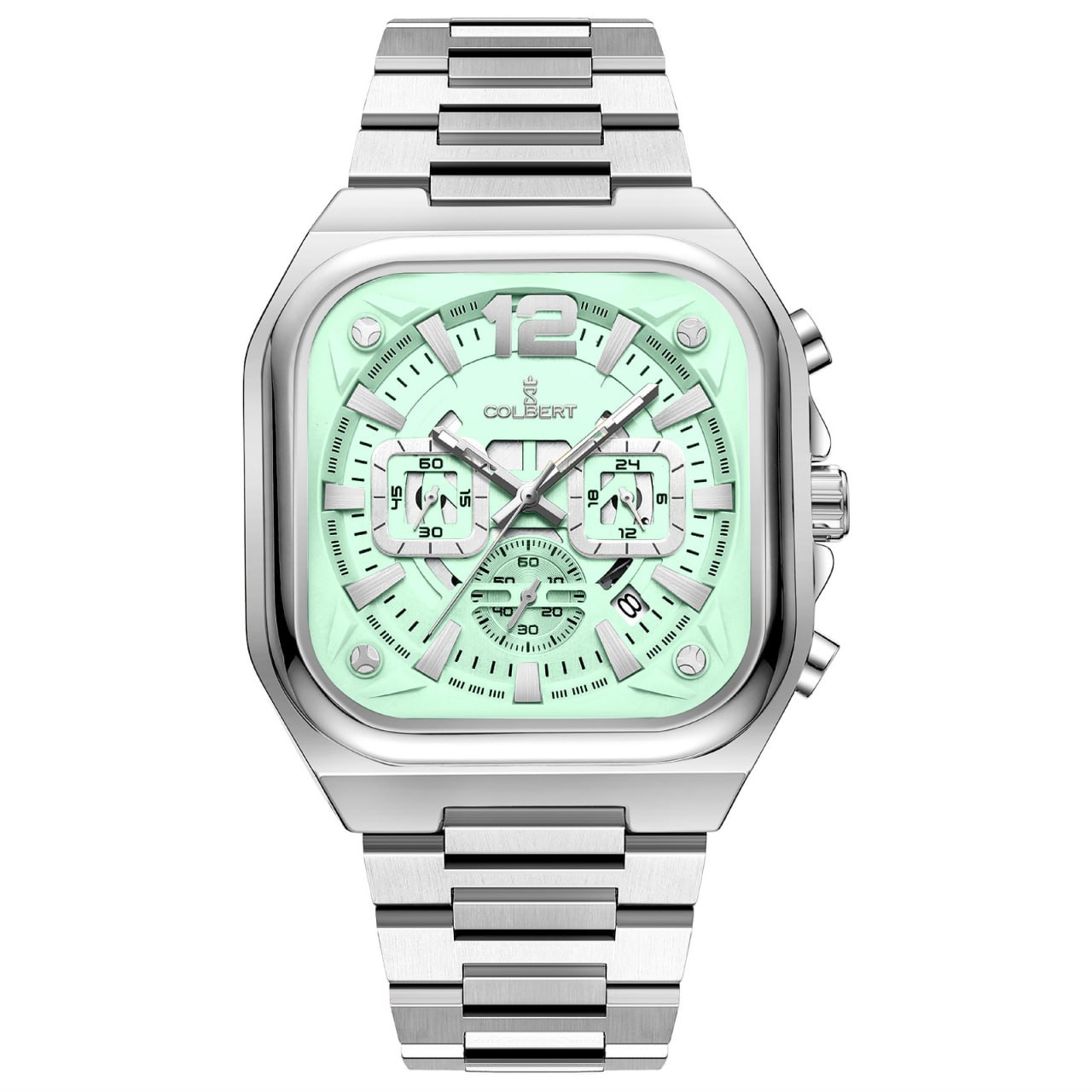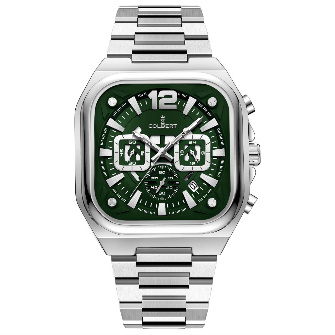 بند نقره ای صفحه سبز پر رنگ قاب نقره ای