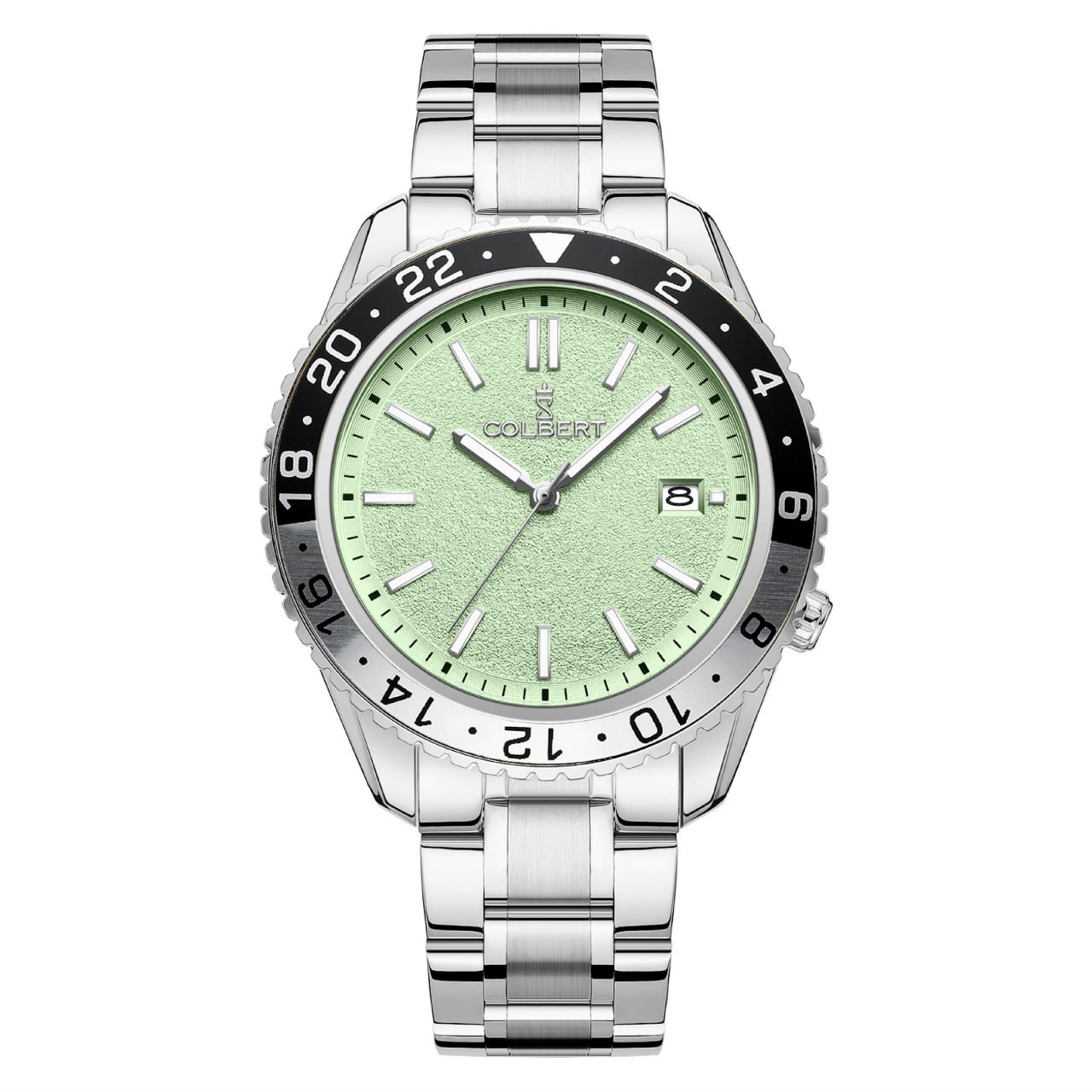 بند نقره ای صفحه سبز کمرنگ شاینی قاب نقرهای مشکی