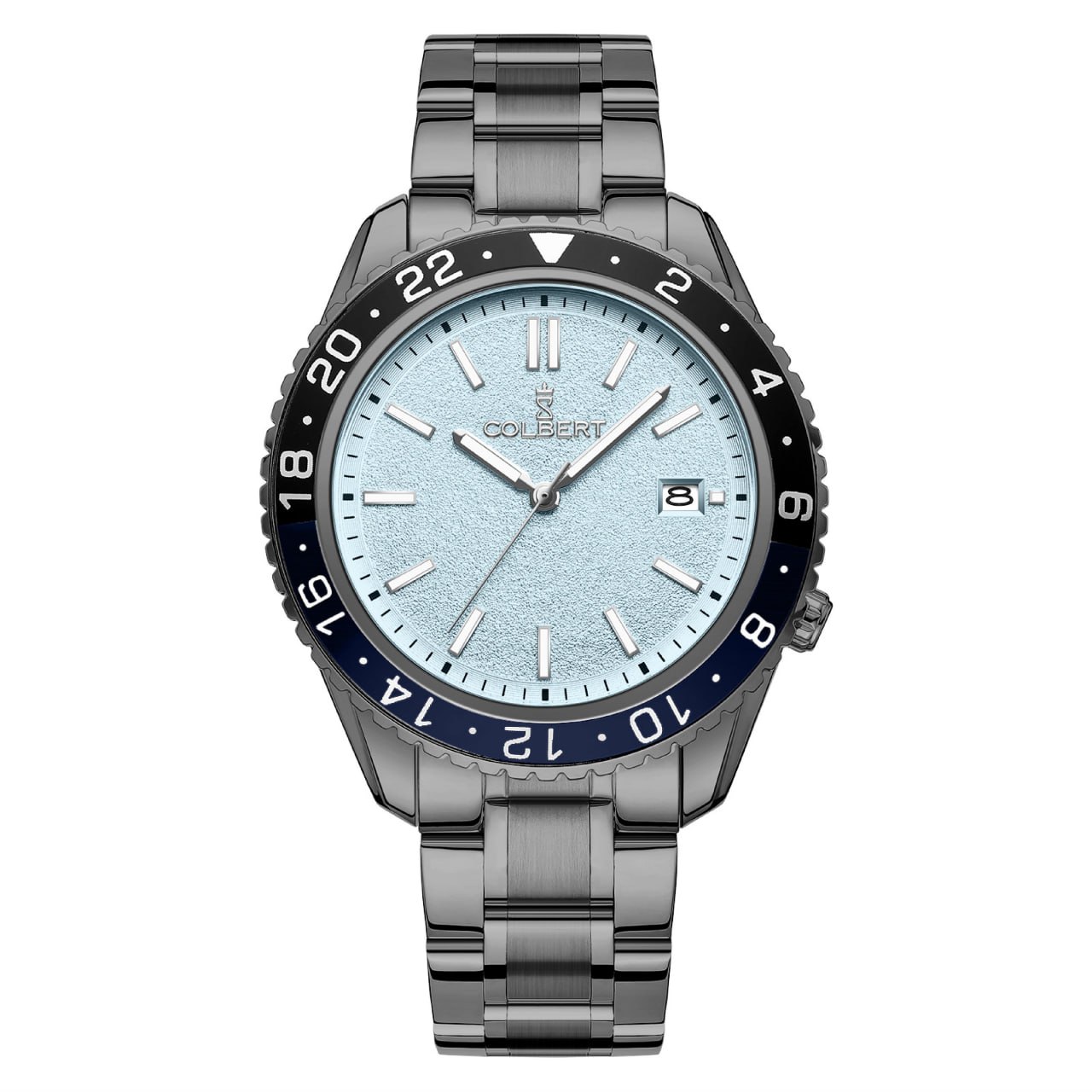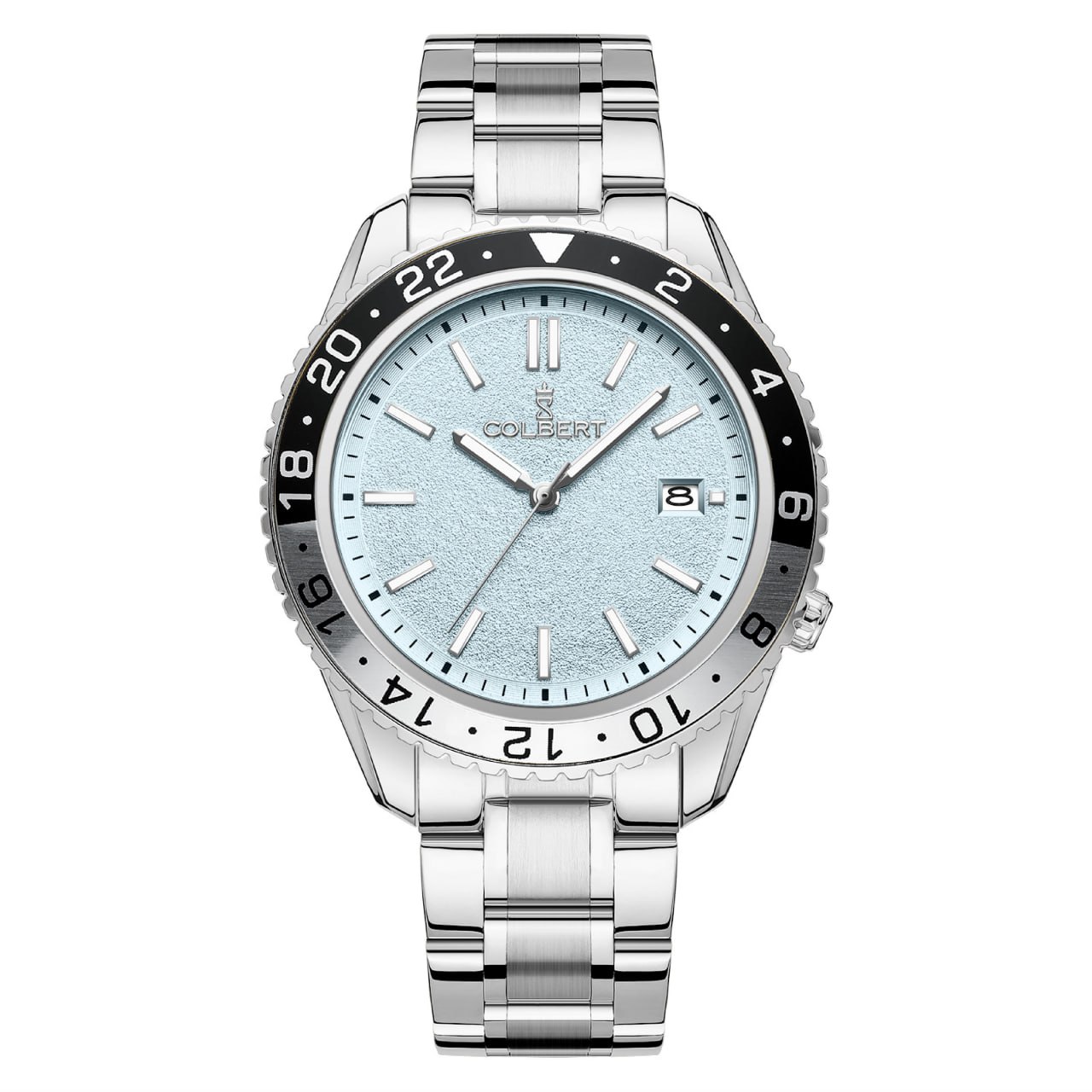بند نقره ای صفحه آبی آسمانی شاینی قاب نقرهای مشکی