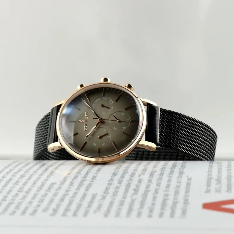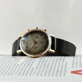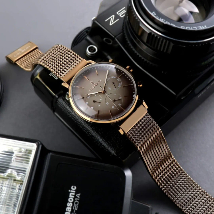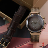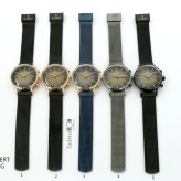 ساعت مچی با موتور میوتا ژاپن و اندازه قاب ۴۲ میلی متر. دارای بند حصیری ضد حساسیت و صفحه با رنگبندی و عقربه شب نما. همراه با جعبه و پاکت کلبرت و یک عدد بند چرم رایگان.