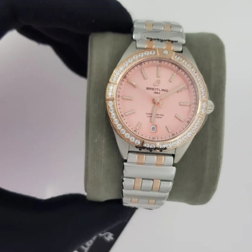 ساعت برند برایتلینگ زنانه بند استیل دور قاب نگین دار کد: 2293
